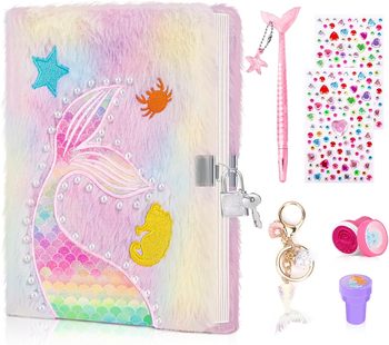 Nhật Ký Nàng Tiên Cá Với Khóa Và Chìa Khóa Trẻ Em Của Tie-Dye Mờ Nhật Ký Ngang Lưới Fluffy Bí Mật Máy Tính Xách Tay Cho Văn Và Sơn